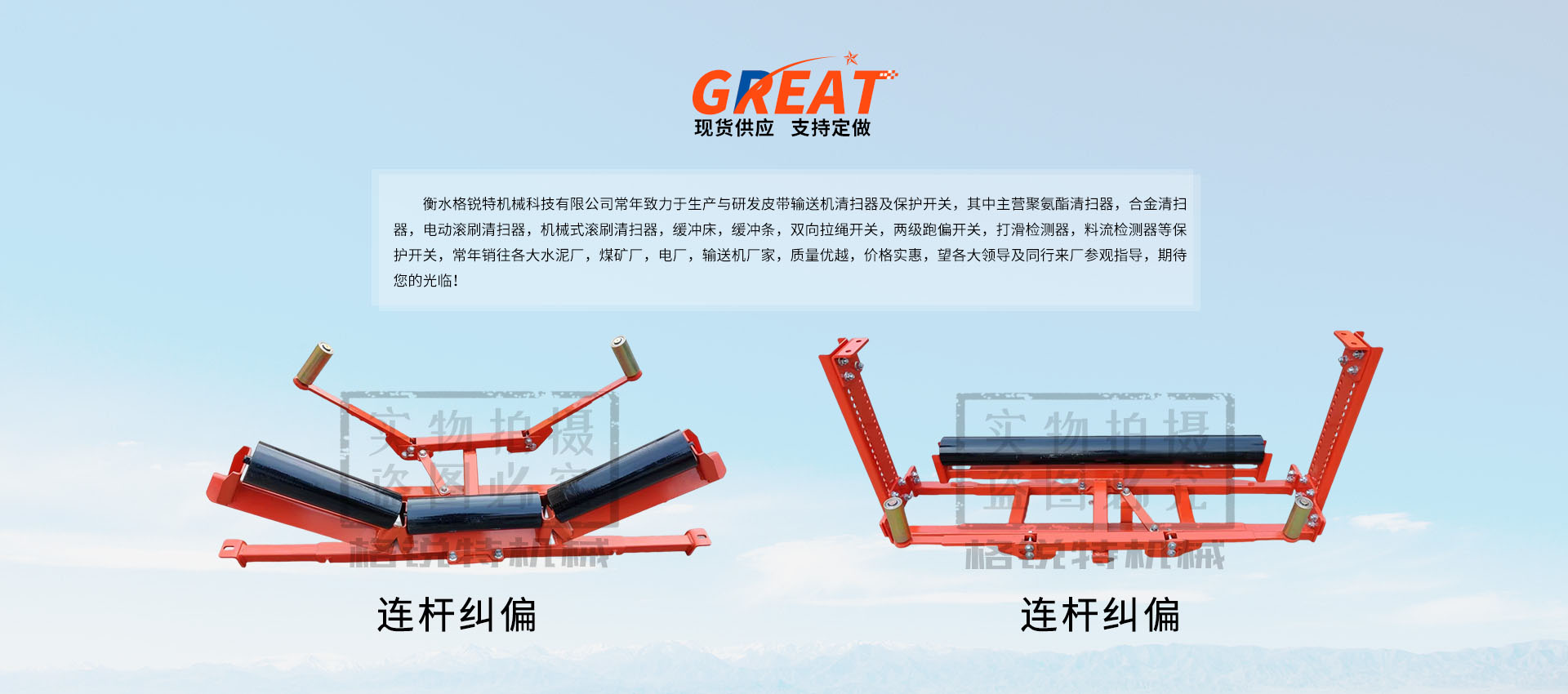 衡水格銳特機(jī)械科技有限公司常年致力于生產(chǎn)與研發(fā)皮帶輸送機(jī)清掃器及保護(hù)開關(guān),其中主營聚氨酯清掃器,合金清掃器,電動滾刷清掃器,機(jī)械式滾刷清掃器,緩沖床,緩沖條,雙向拉繩開關(guān),兩級跑偏開關(guān),打滑檢測器,料流檢測器等保護(hù)開關(guān),常年銷往各大水泥廠,煤礦廠,電廠,輸送機(jī)廠家,質(zhì)量優(yōu)越,價格實惠,望各大領(lǐng)導(dǎo)及同行來廠參觀指導(dǎo),期待您的光臨!?。?/p>